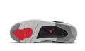 The Air Jordan 4 Infrared features a tonal grey Durabuck upper with black TPU mesh inserts, tech straps, and heel tabs. Hits of Infrared on the lacing system and woven Jordan Flight tongue label add a sharp contrast to the neutral-toned base. From there, a white sole with visible Air units completes the design.