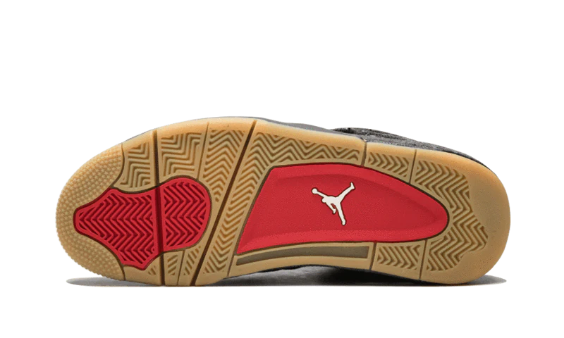 The LeviÕs x Air Jordan 4 ÔBlack DenimÕ overhauls the classic silhouette with materials and details traditionally associated with the iconic American denim brand. In addition to the black denim that covers the upper and midsole, the shoe is accented with LeviÕs signature red tab on the quarter panel. Another LeviÕs trademark Ð the ÔTwo HorsesÕ paper patch Ð is rebranded with a red Jumpman logo and positioned on the tongue, featuring tan coloring thatÕs matched by a gum rubber outsole.