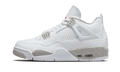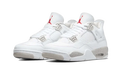 The Air Jordan 4 Retro ÔWhite OreoÕ features a design theme that recalls the original ÔOreoÕ AJ4 from 1999. The black tumbled leather upper of the older shoe is replaced by a clean white finish, though the speckled molded eyelets in Tech Grey remain the same. The neutral hue is repeated on the Jumpman heel logo and polyurethane midsole, featuring encapsulated Air cushioning in the forefoot and a visible unit under the heel. A second Jumpman adorns the tongue in a contrasting pop of Fire Red.