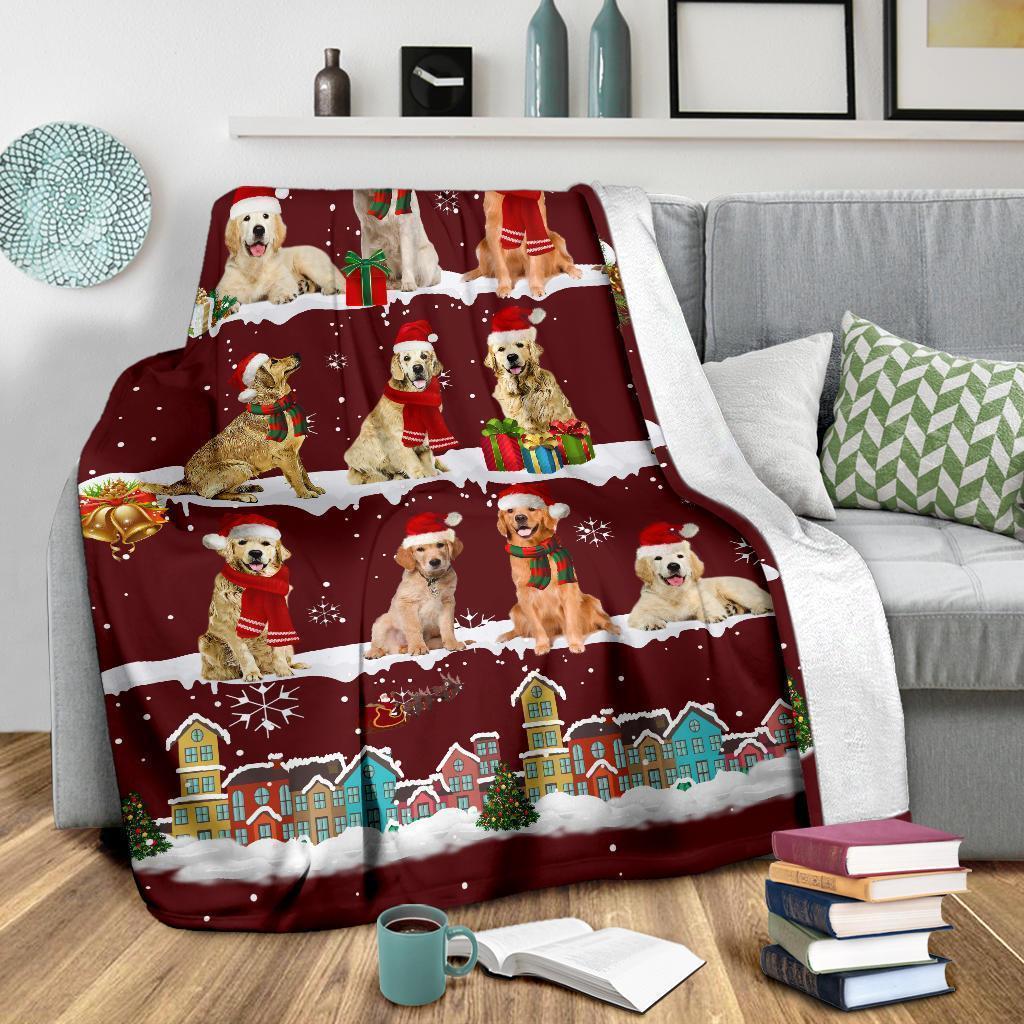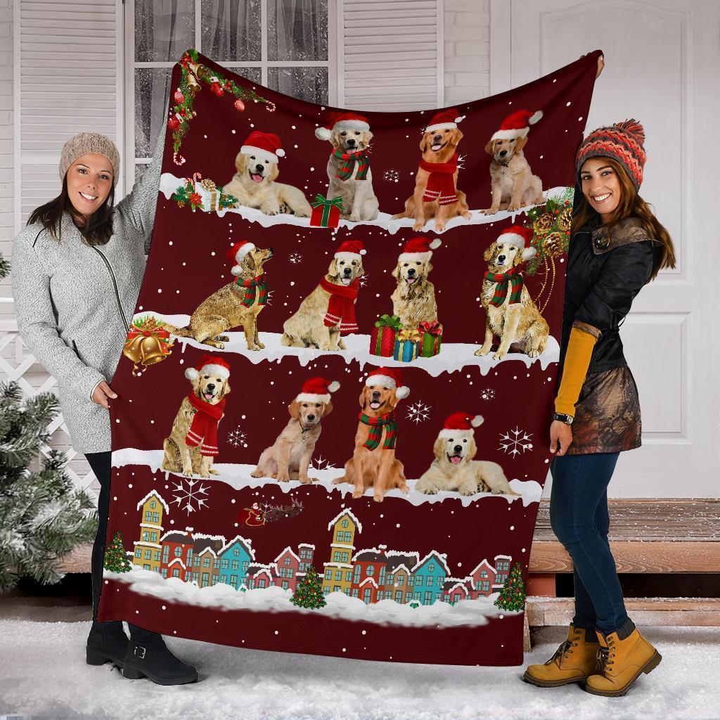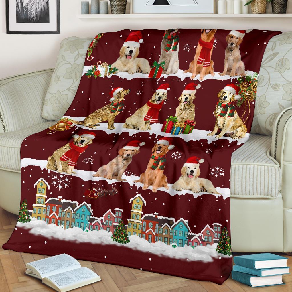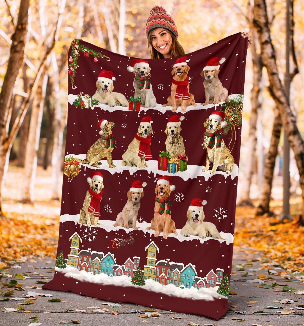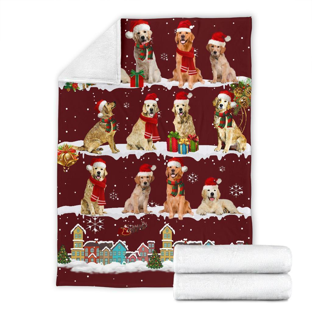 Cute Christmas Golden Retriever Fleece Blanket Xmas