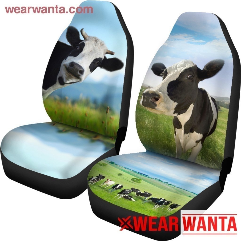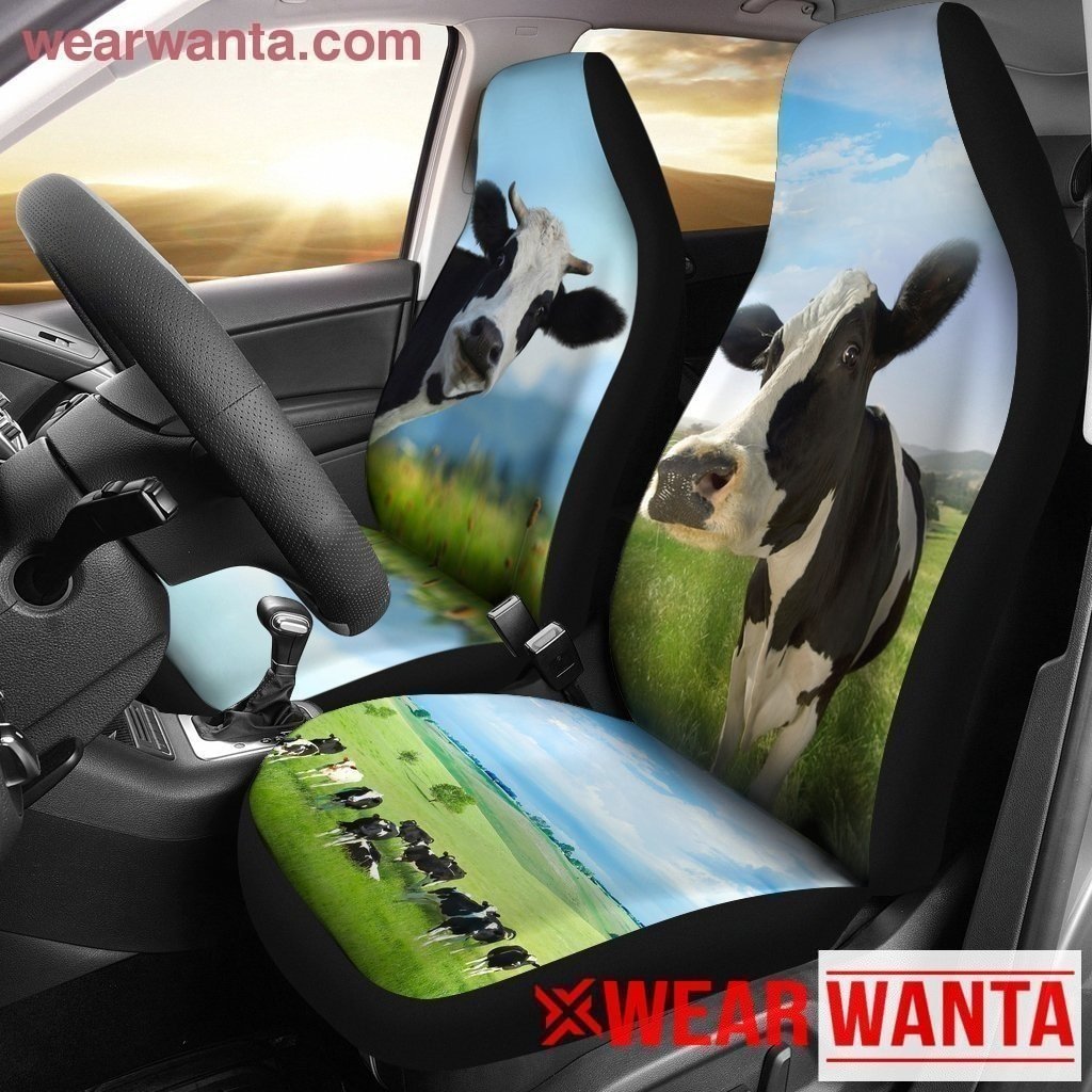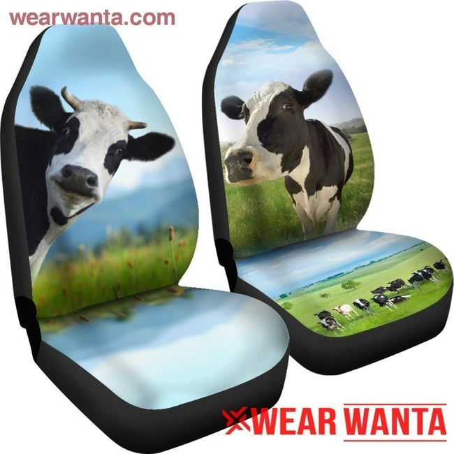 Cute Cow On Green Grass Field Car Seat Covers LT03