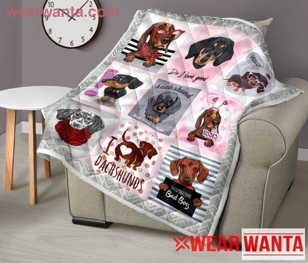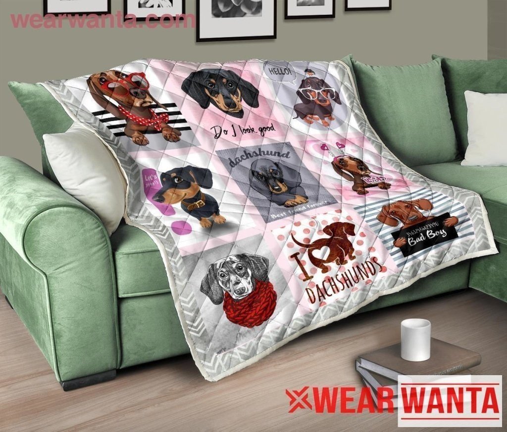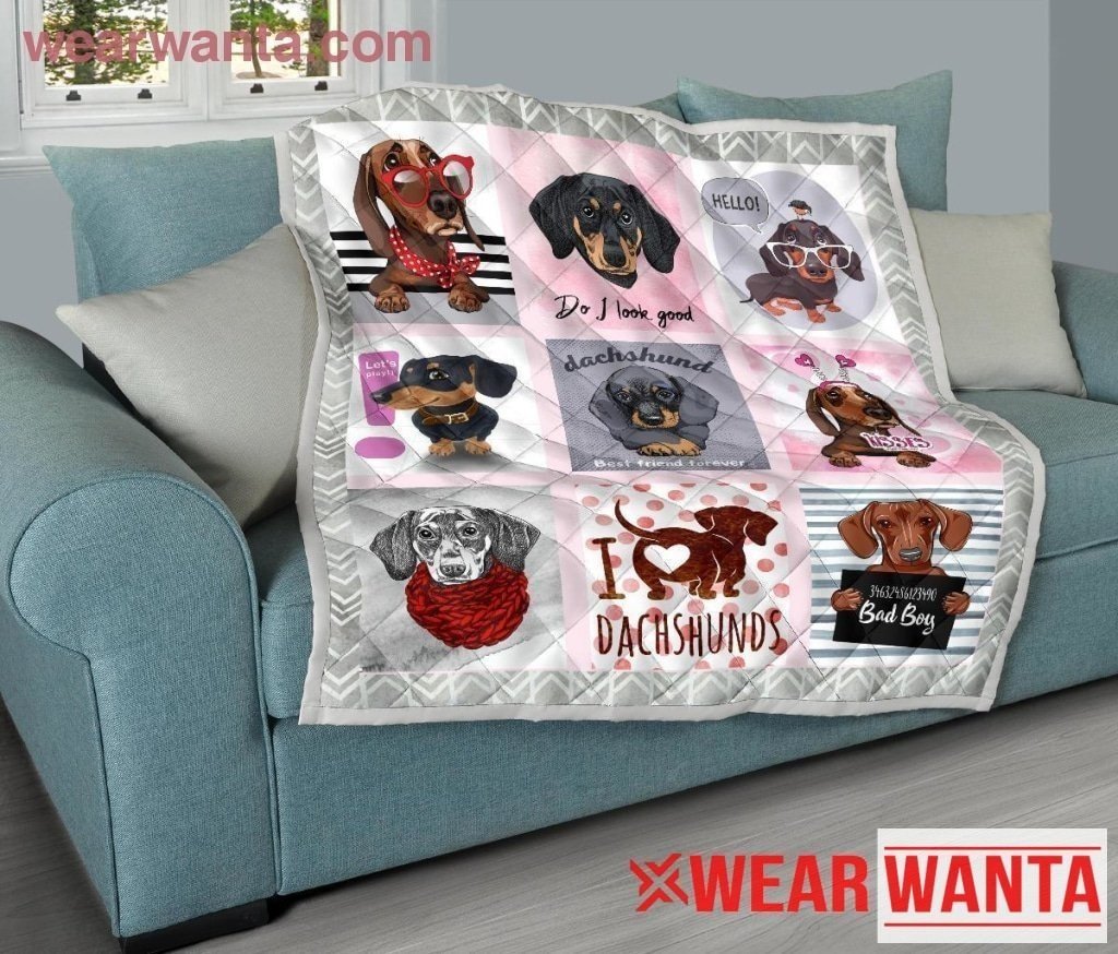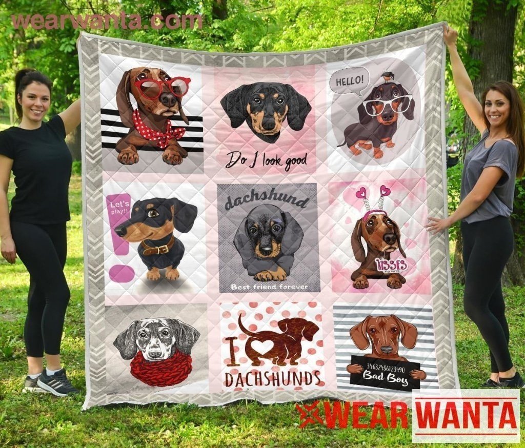 Cute Dachshund Dog Lover Quilt Blanket Gift