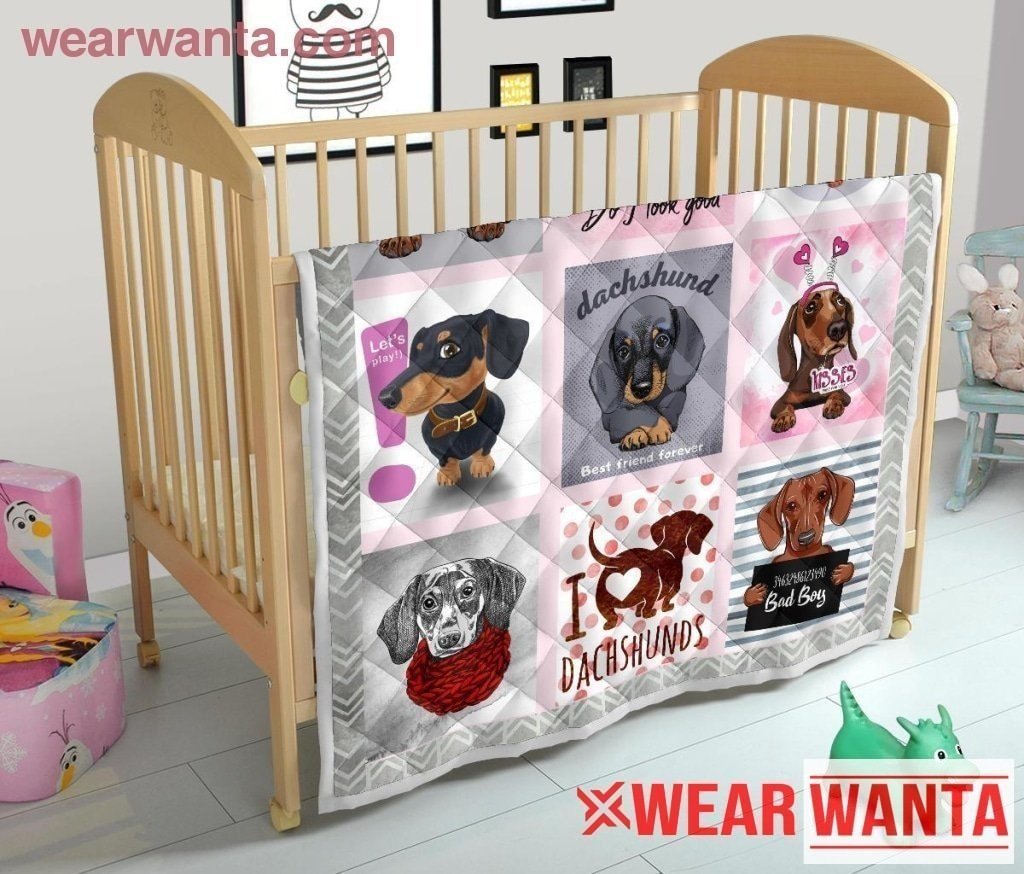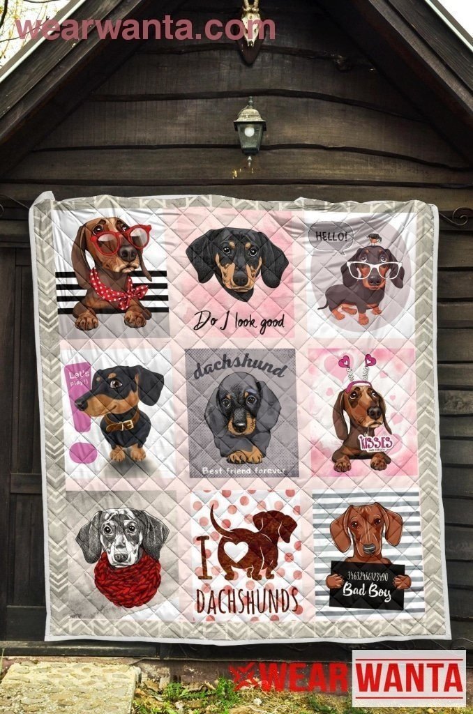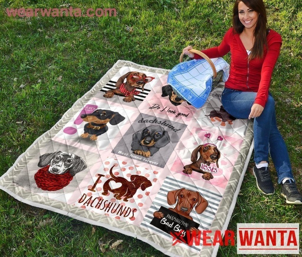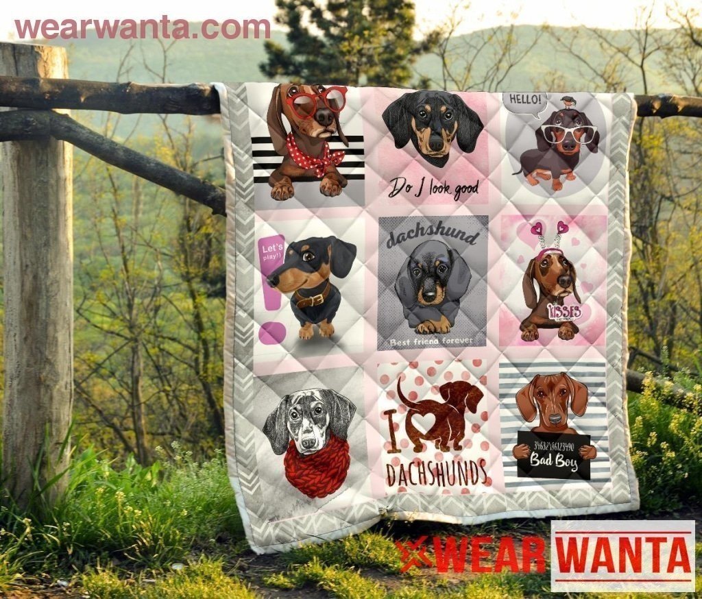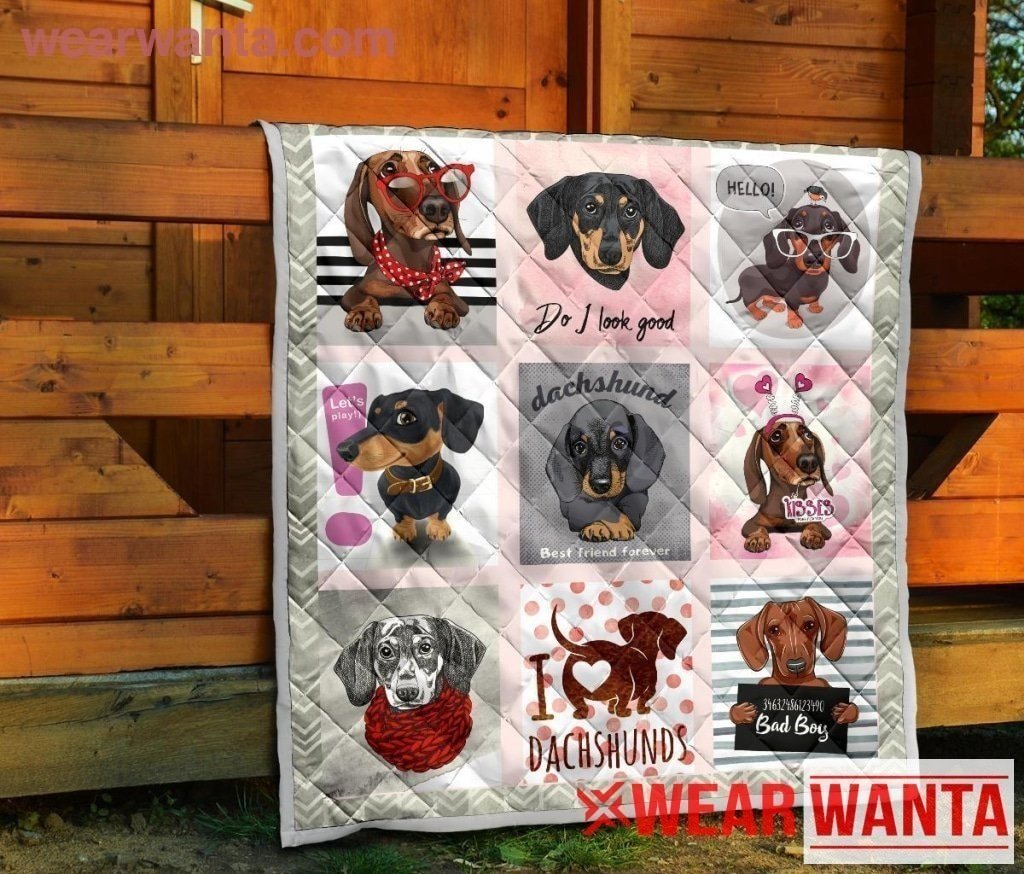 Cute Dachshund Dog Lover Quilt Blanket Gift