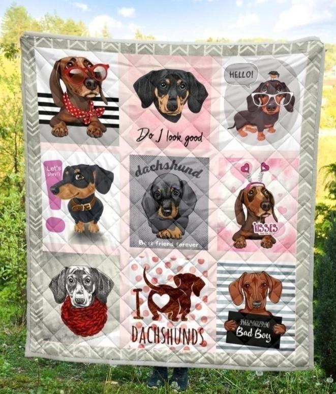 Cute Dachshund Dog Lover Quilt Blanket Gift TT07