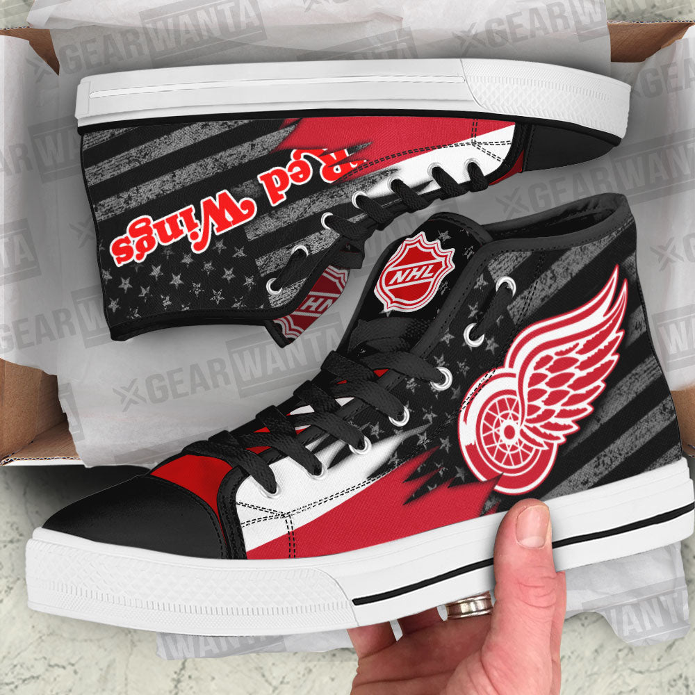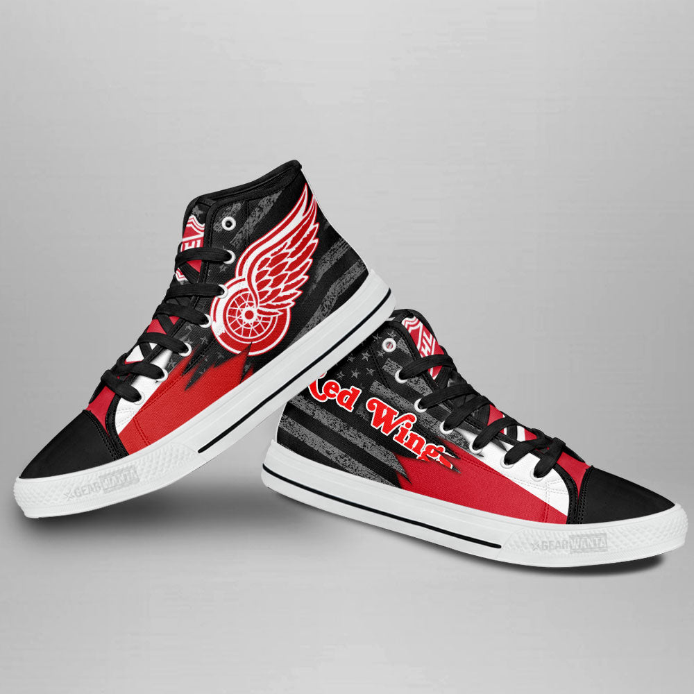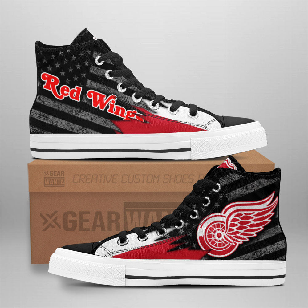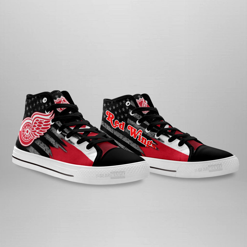 Detroit Red Wings High Top Shoes Custom American Flag Sneakers