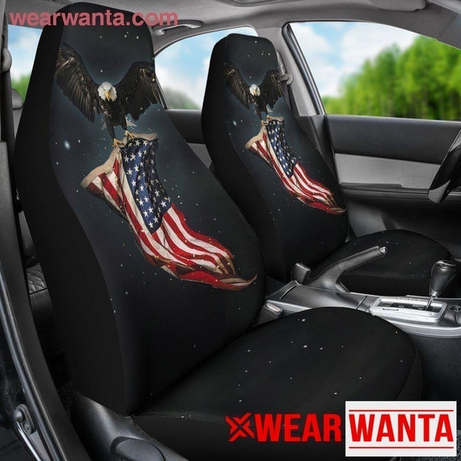 Bald Eagle US Flag Car Seat Covers Custom Patriotic Car Accessories