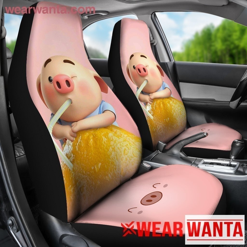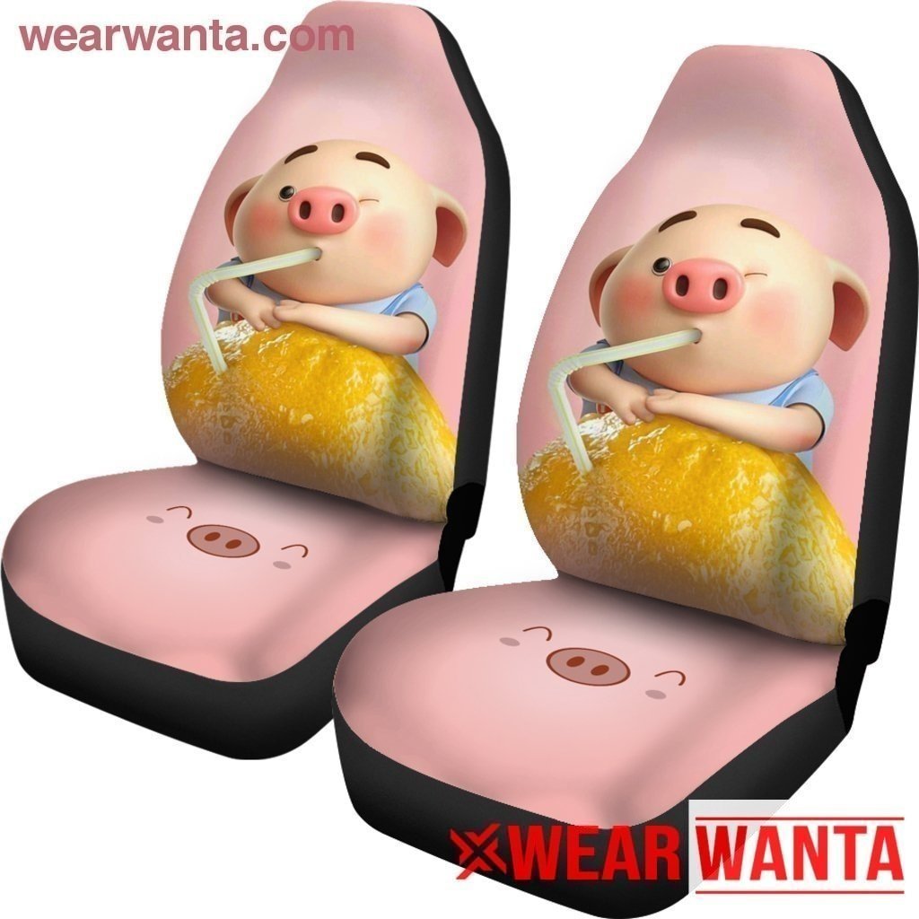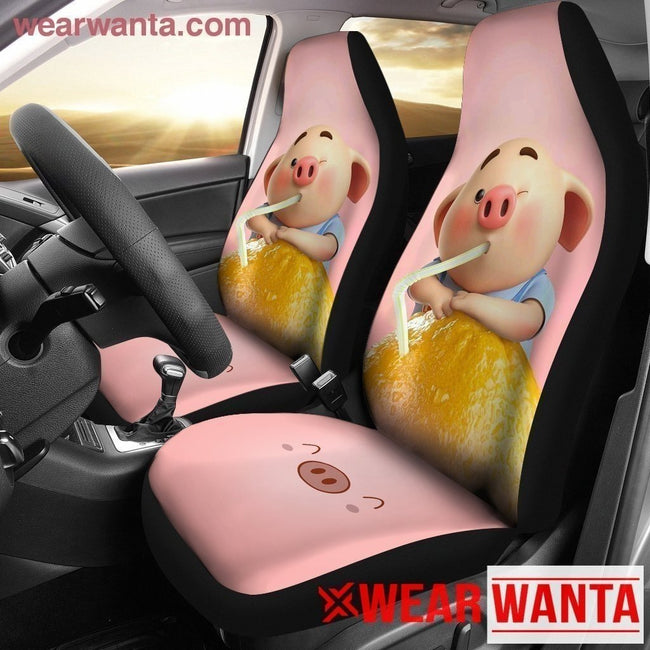 Funny Pig Drinking Orange Juice Car Seat Covers LT03