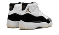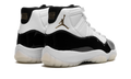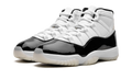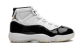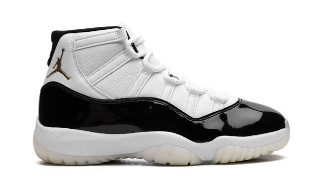The Jordan 11 “Gratitude” is the modern re-release of the colorway of Michael Jordan’s eleventh signature shoe that originally released as part of the “Defining Moments Pack” from 2006. Also nicknamed the “DMP 2023” colorway, this Jordan 11 is based on the retro basketball sneaker’s original “Concord” colorway that was worn by Jordan with the Chicago Bulls throughout the team’s historic run during the 1995-96 NBA season. The upper features a white leather construction, instead of the original DMP colorway's ballistic mesh build. A glossy black patent leather mudguard contrasts the shoe’s neutral base. Metallic Gold Jumpman branding is found on the collar while “Jumpman” detailing appears across the white mesh tongue. Underfoot, the white foam midsole and translucent rubber outsole complete the look. Release date: December 9, 2023 Gratitude