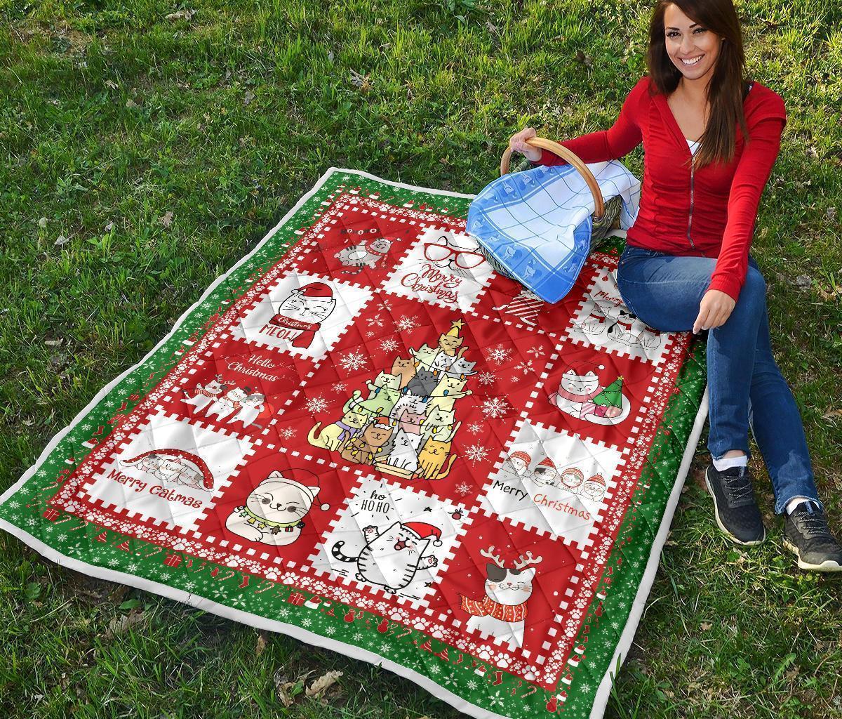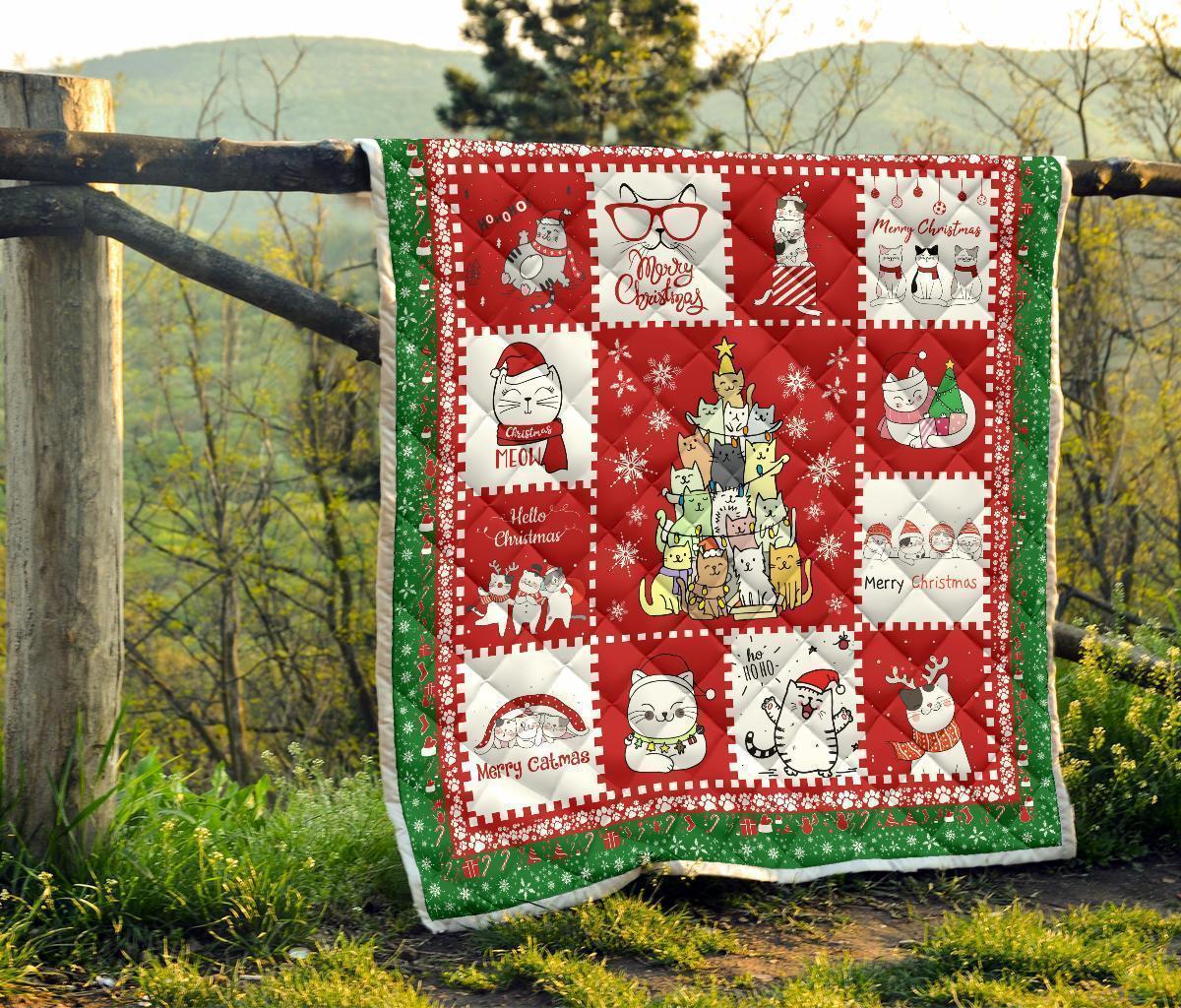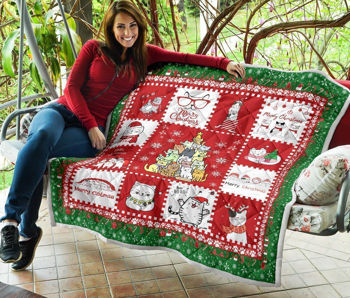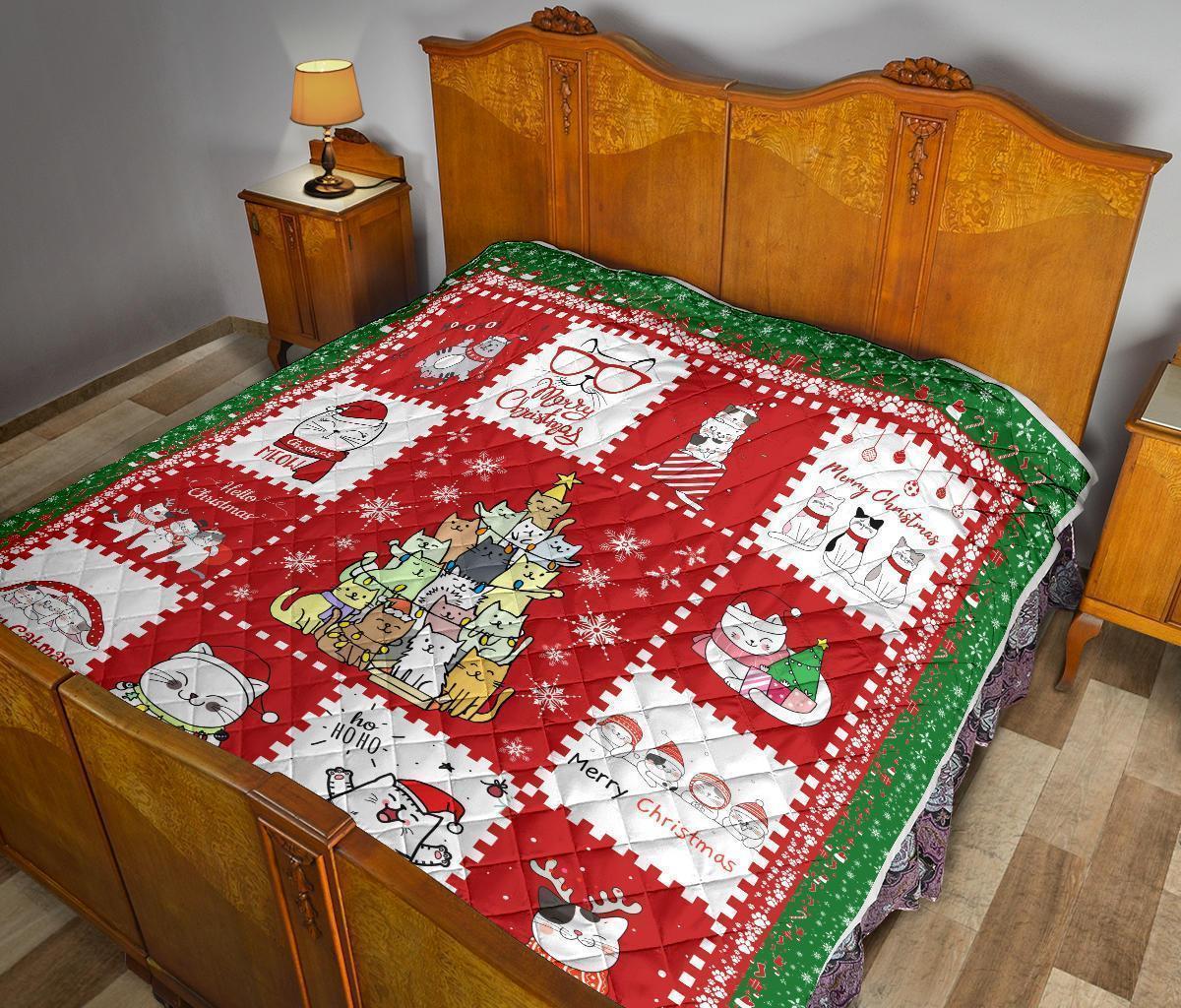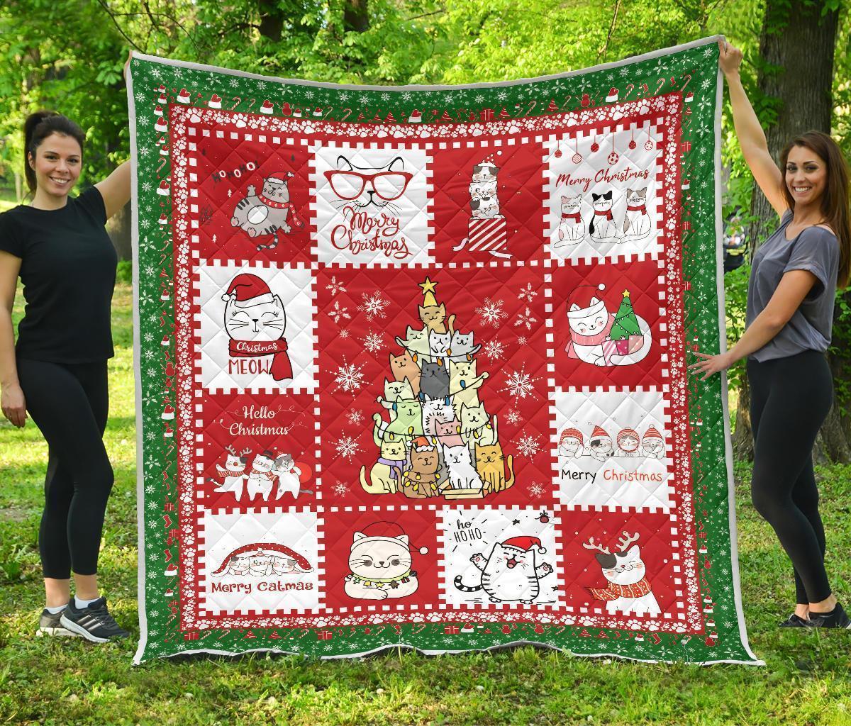 Merry Christmas Cat Quilt Blanket Xmas Gift For Cat Lover NH1911