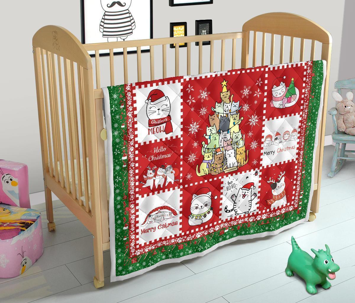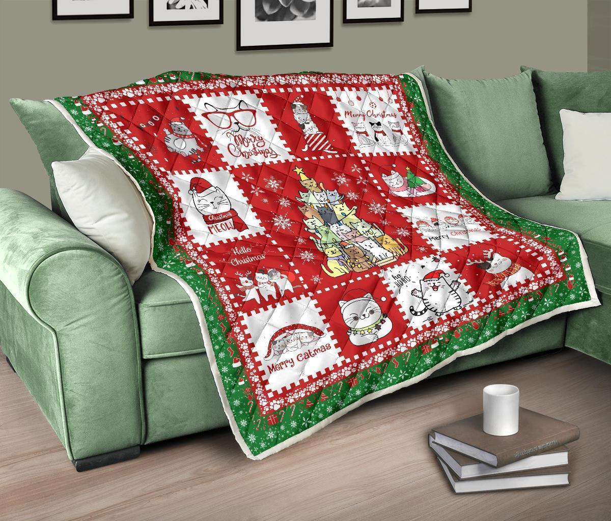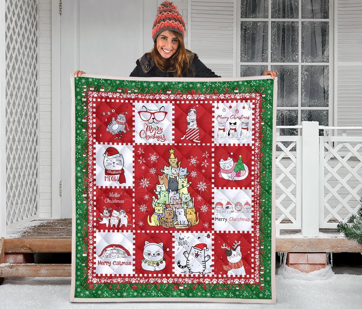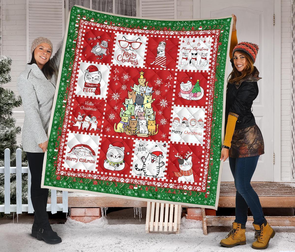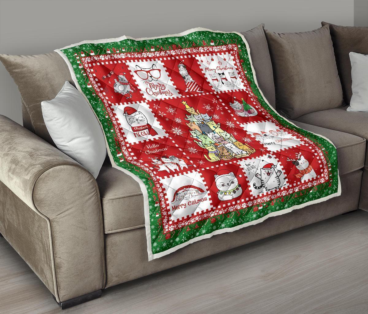 Merry Christmas Cat Quilt Blanket Xmas Gift For Cat Lover NH1911