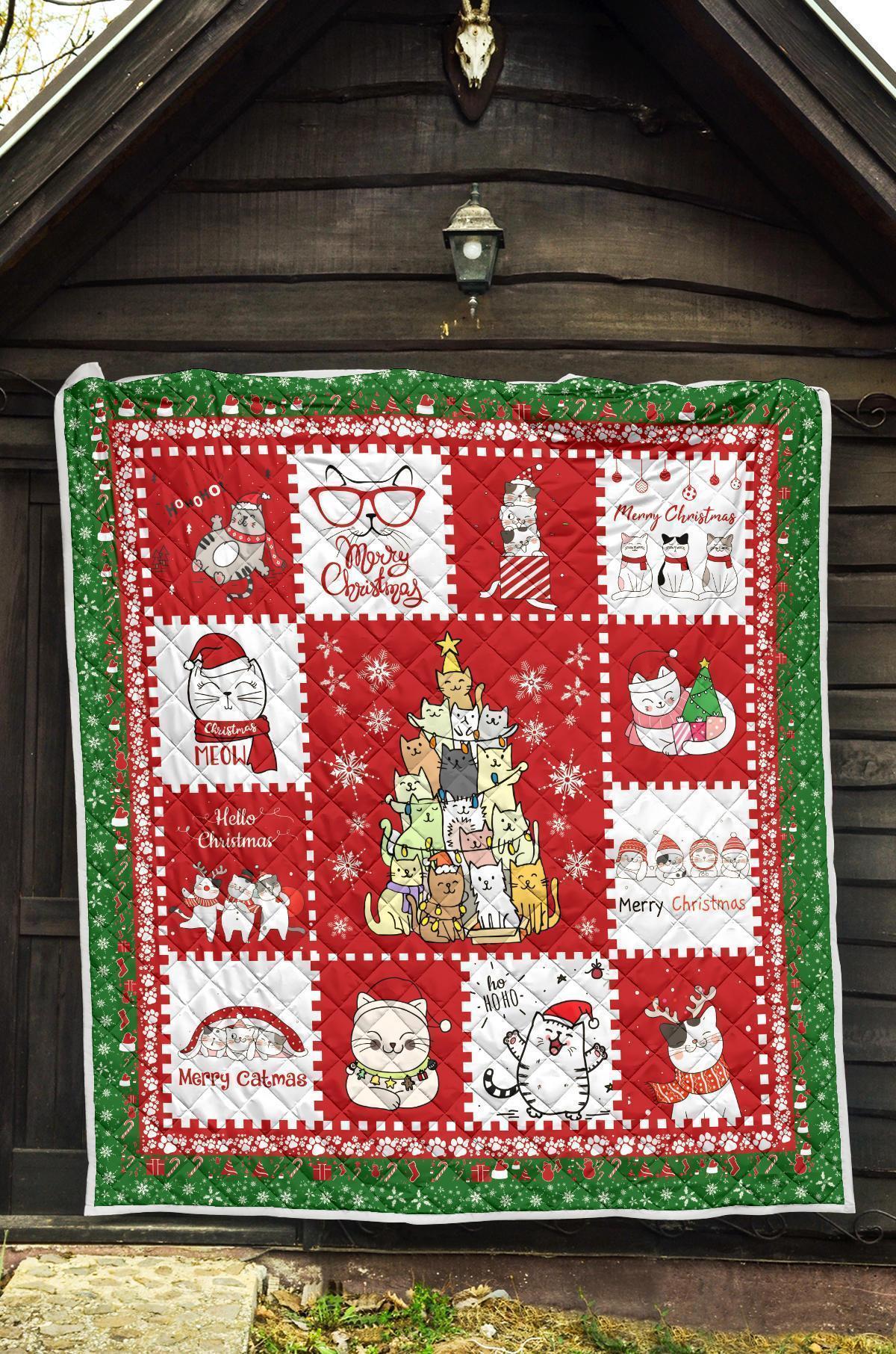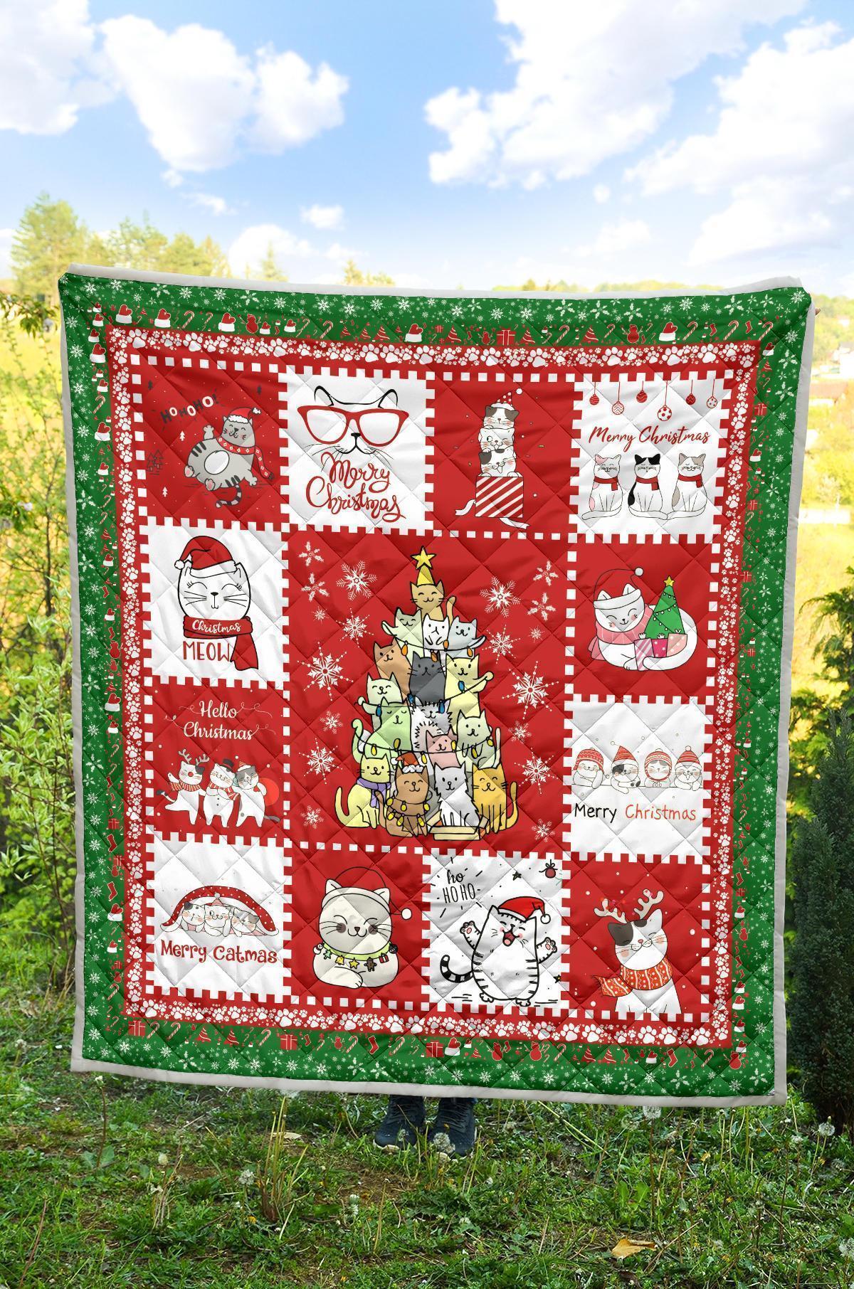 Merry Christmas Cat Quilt Blanket Xmas For Cat Lover