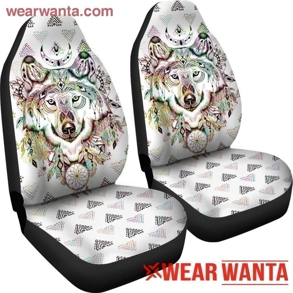 Native Wolf Car Seat Covers Custom Car Decoration Accessories