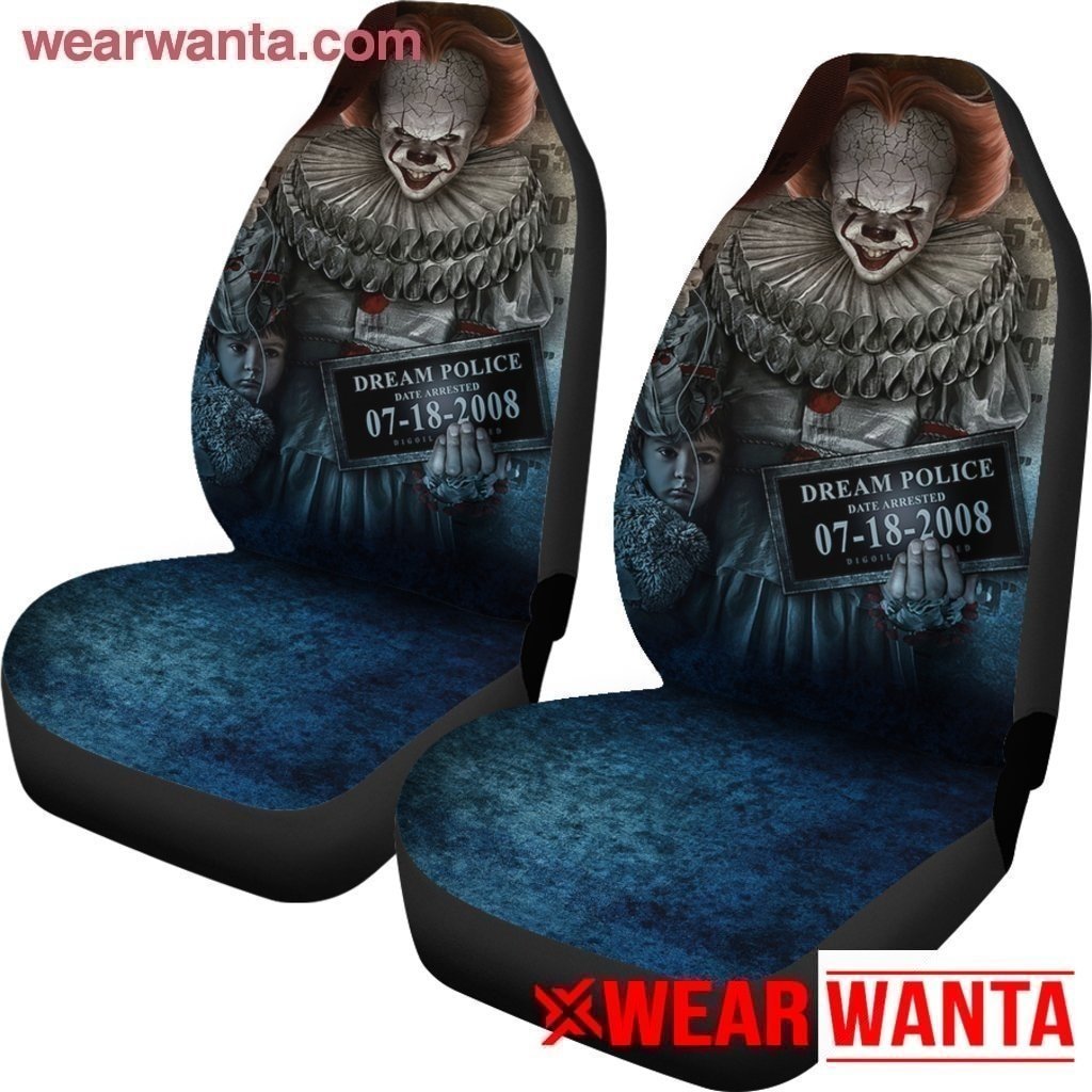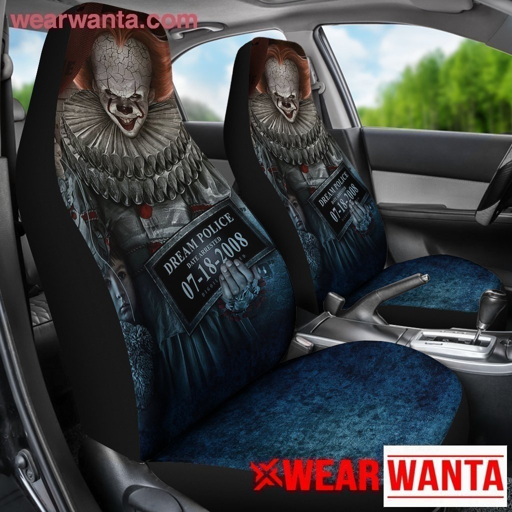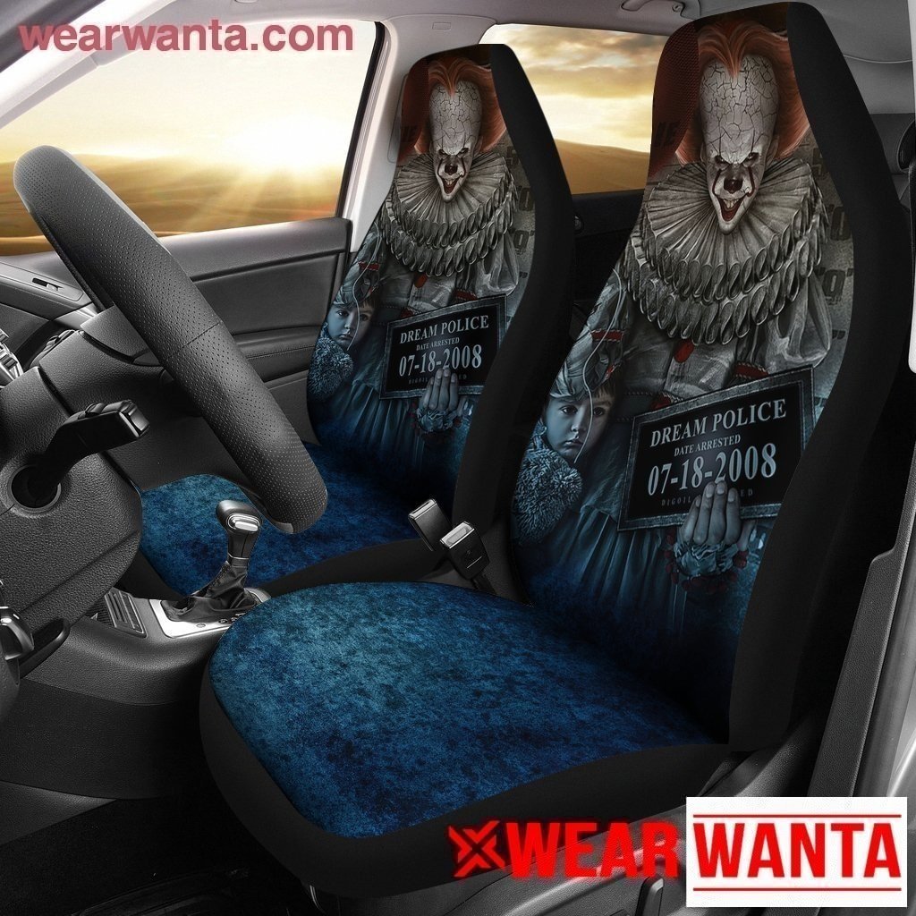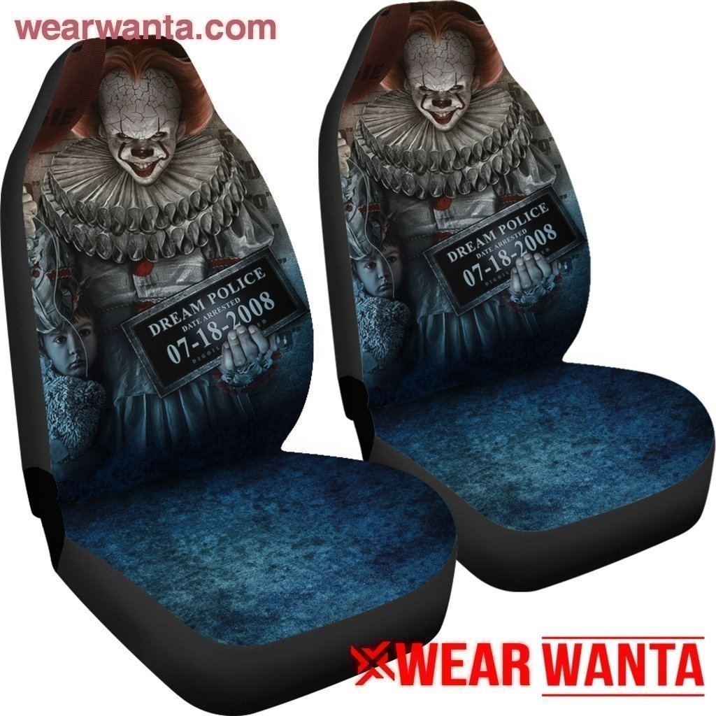 Pennywise IT Car Seat Covers Custom Horror Police Wanted Car Decoration