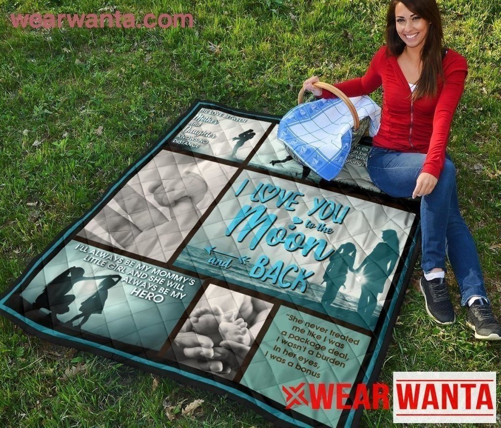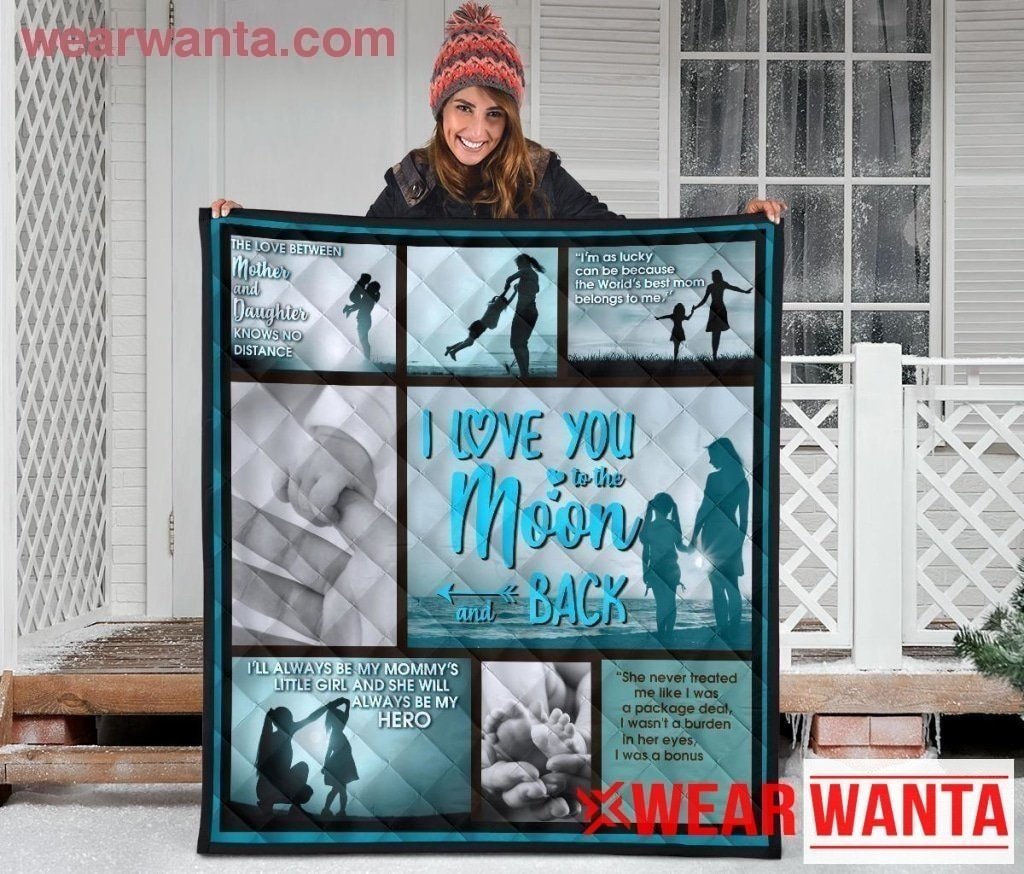 The Love Between Mom & Daughter To The Moon And Back Blanket