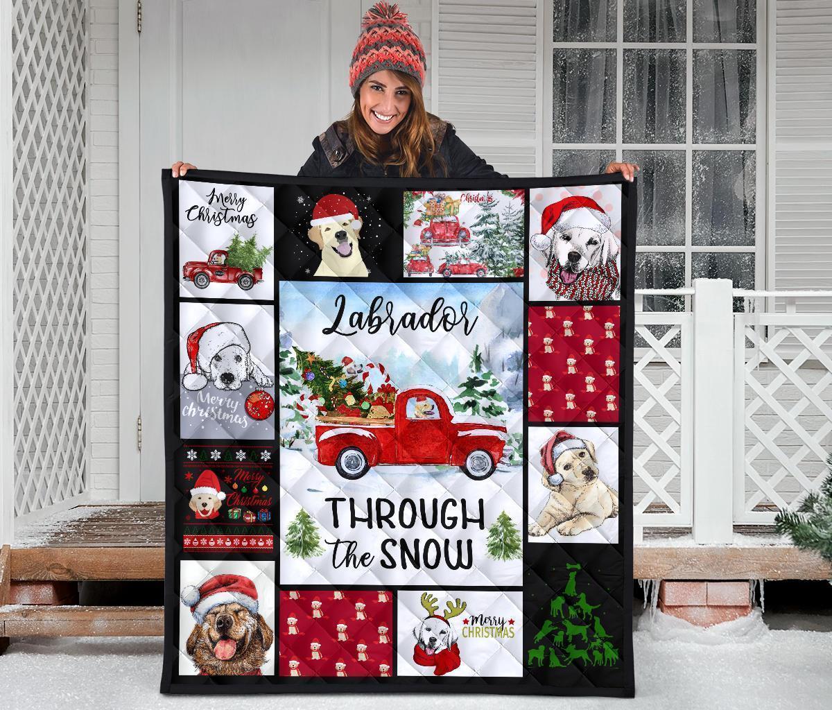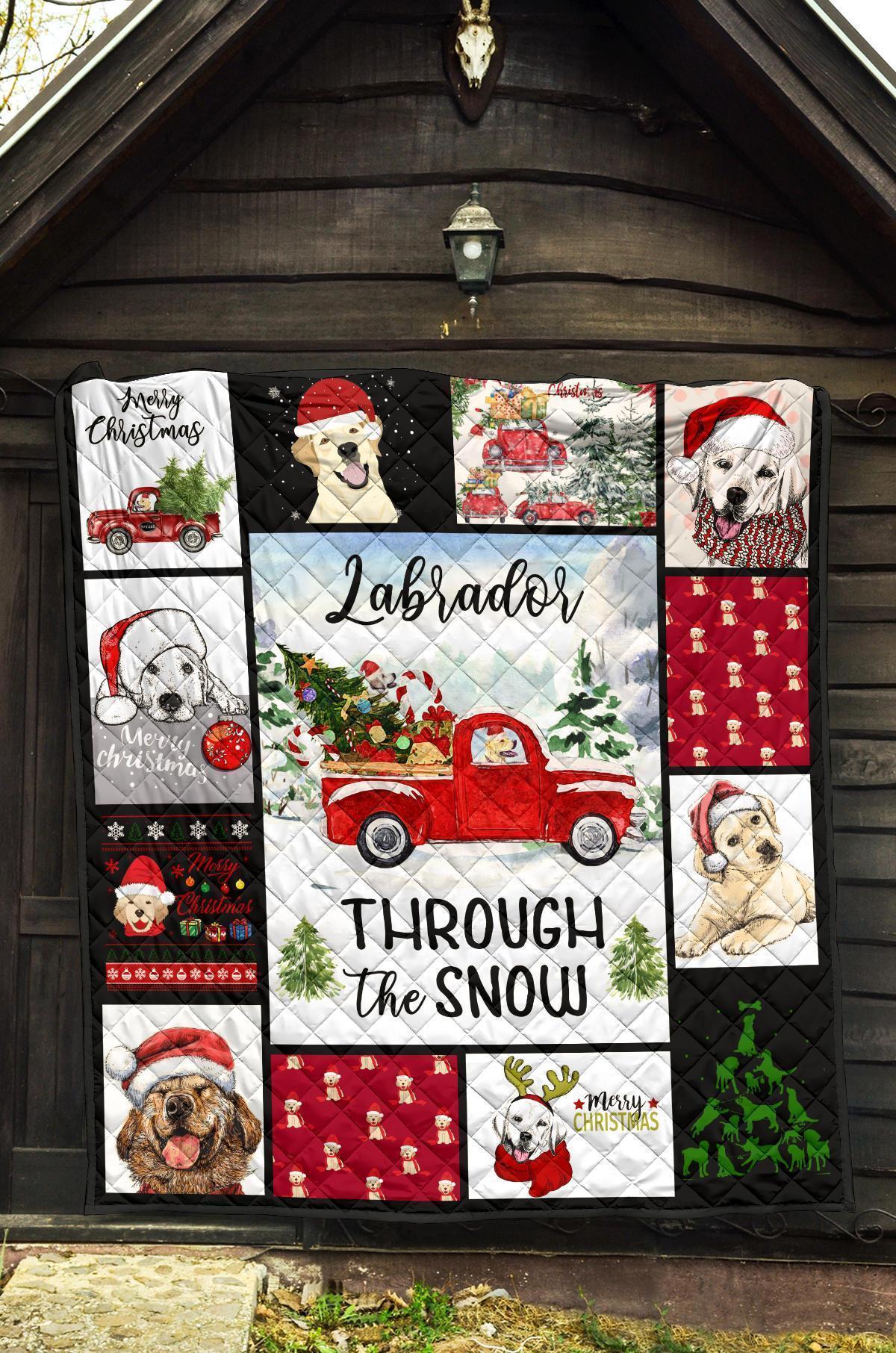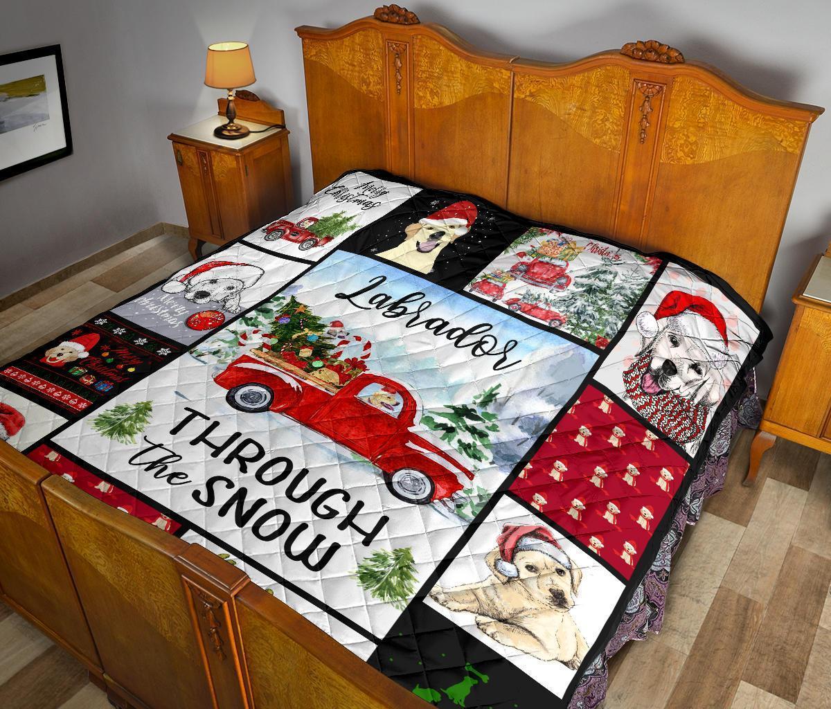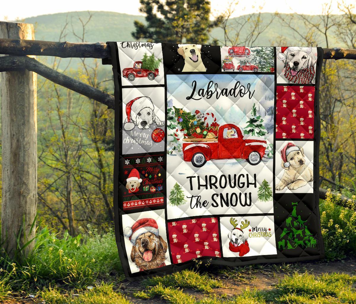 Through The Snow Labrador Dog Quilt Blanket Xmas