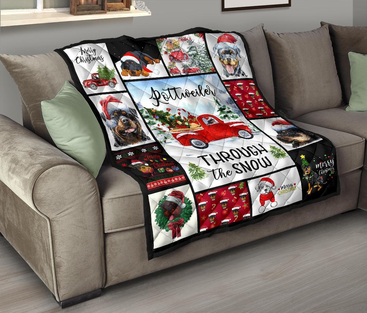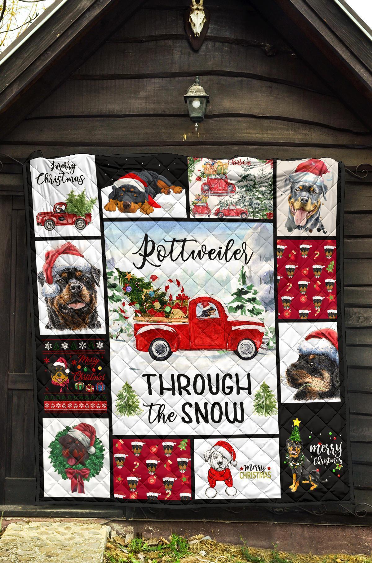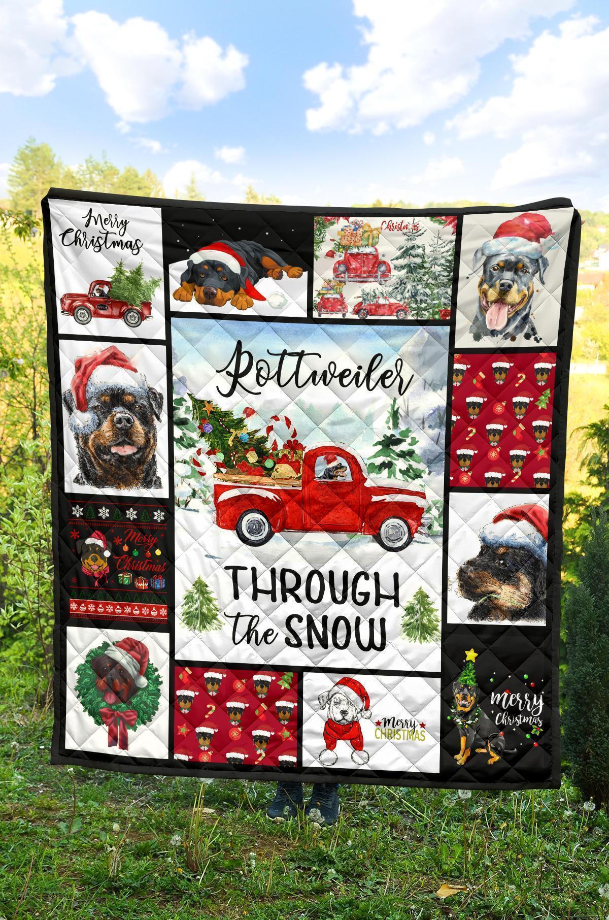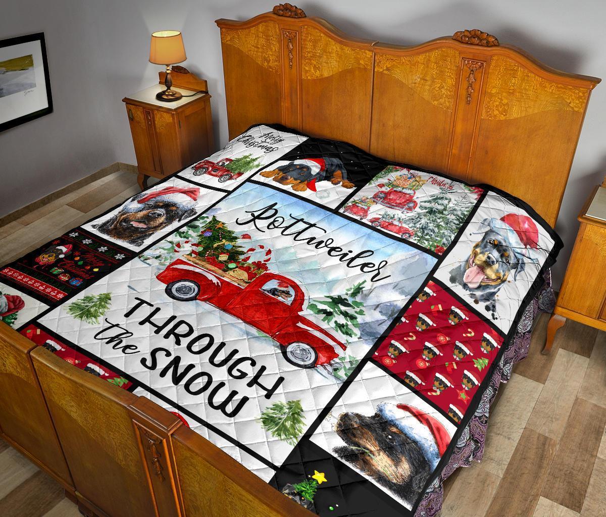Through The Snow Rottweiler Dog Quilt Blanket Xmas