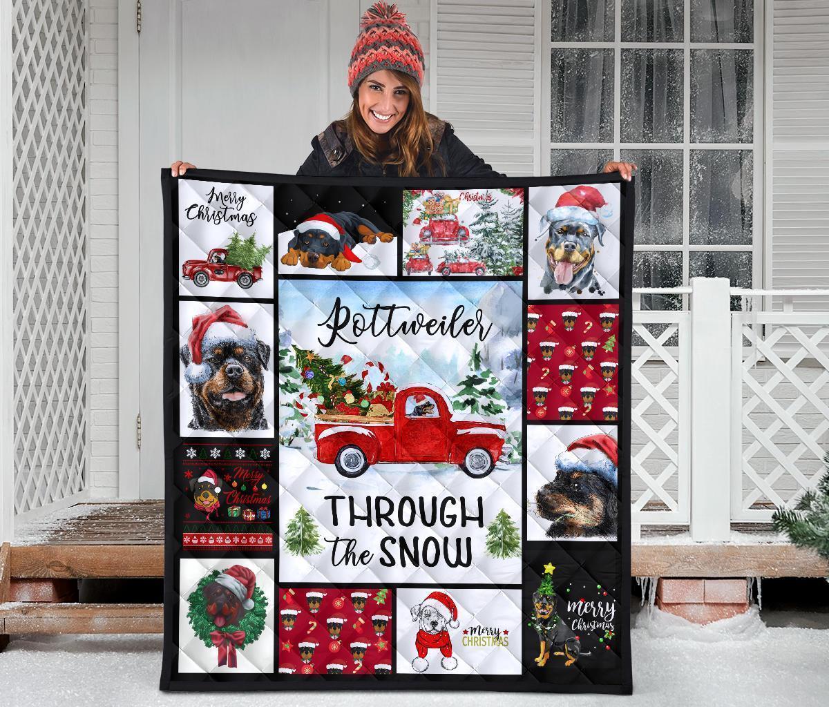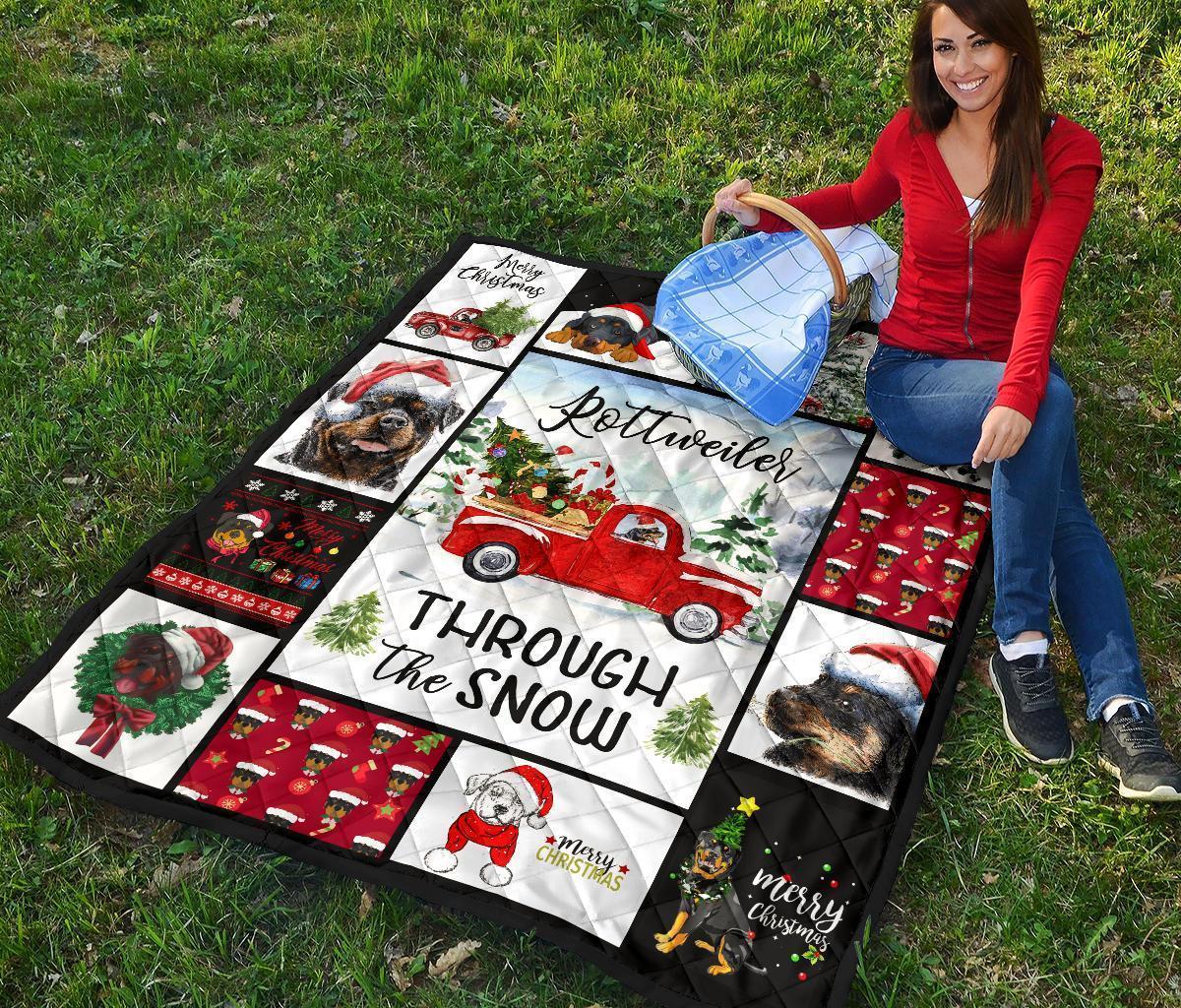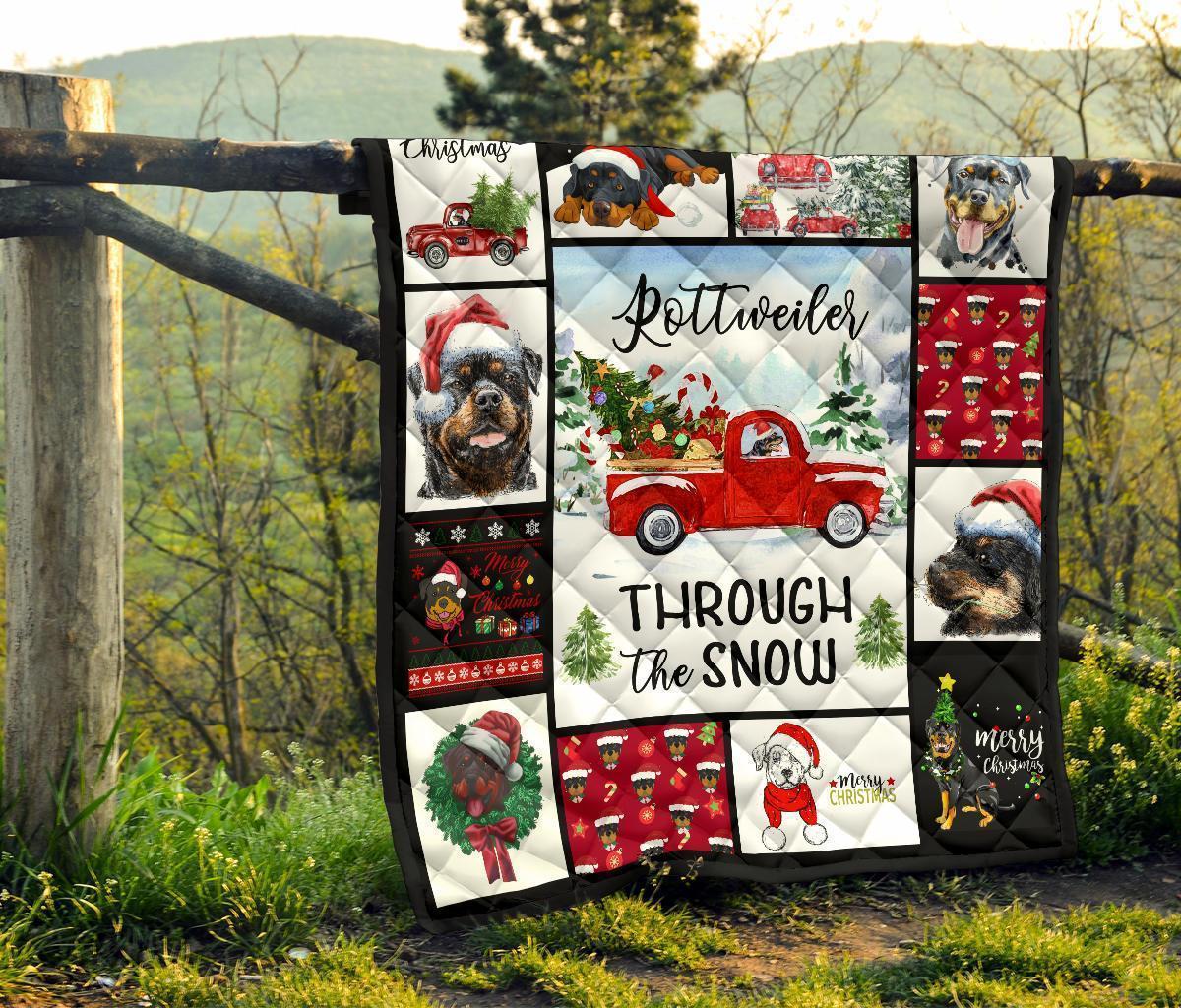 Through The Snow Rottweiler Dog Quilt Blanket Xmas
