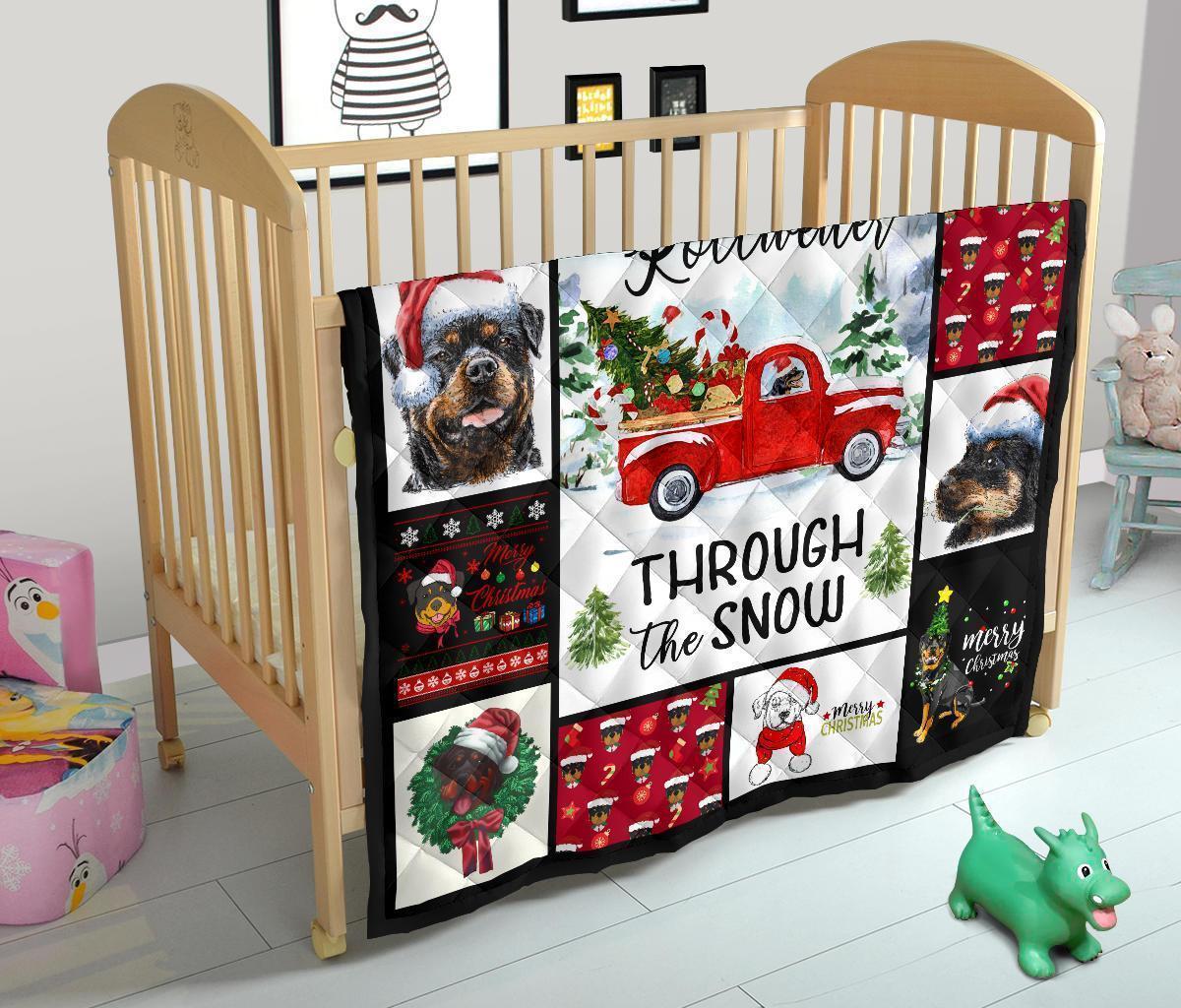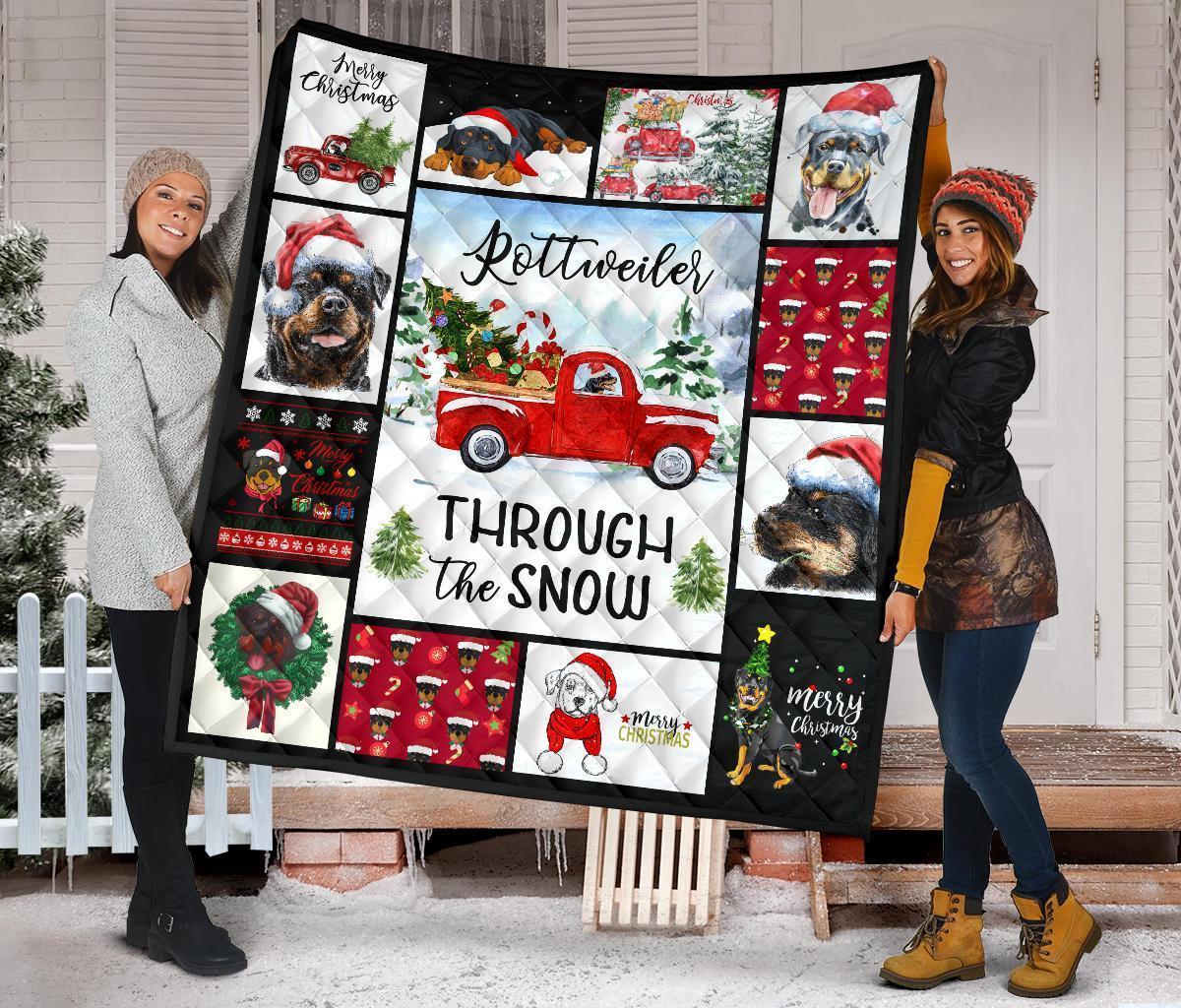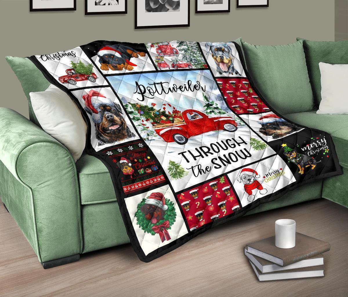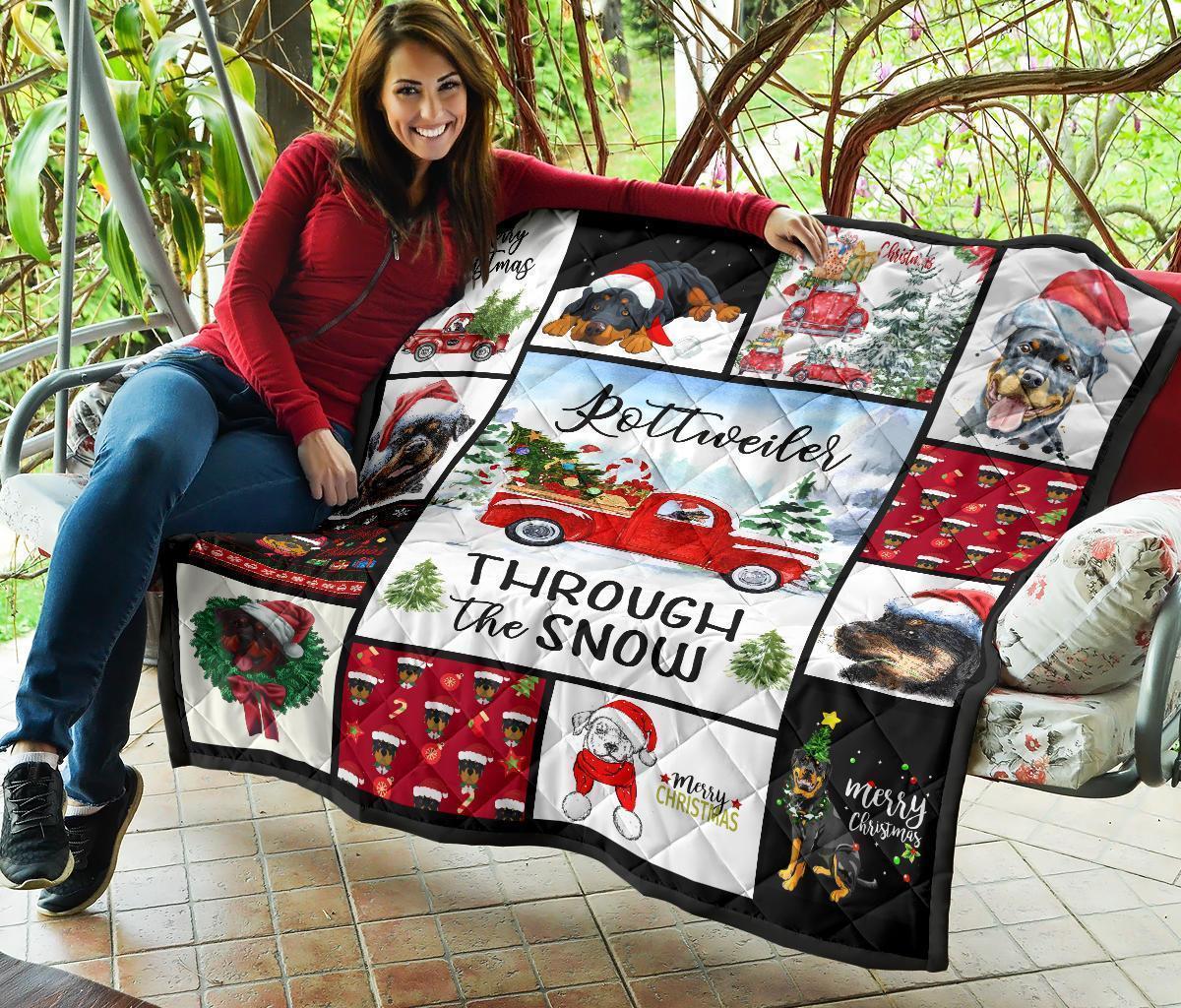 Through The Snow Rottweiler Dog Quilt Blanket Xmas