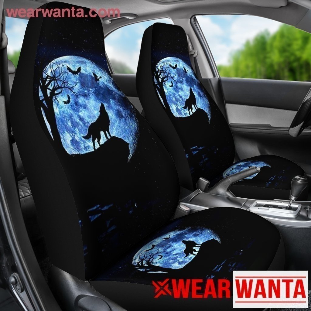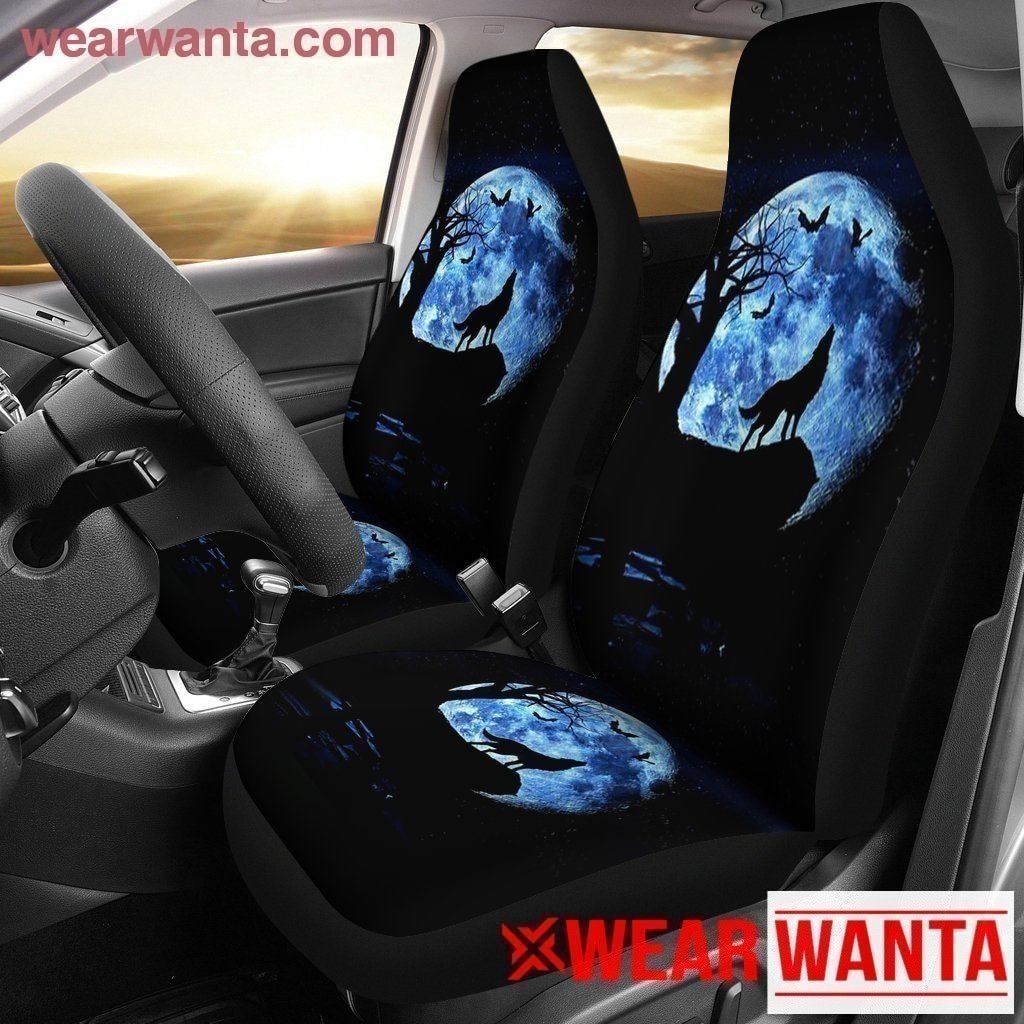 Moonlight Wolf Howl Car Seat Covers Custom Car Decoration For Wolf Lover